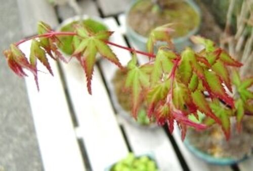 春もみじ。雪どけとともに芽吹いて紅色や萌黄色に染まった木々を秋のもみじに例えたもの。なんと風雅な言葉だろう。 私の鉢にも、小さな小さな春もみじ。もみじの芽ってこんな風に赤いのだ。夏にはこれが緑になって、秋にはまた赤く色づく。