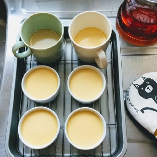 生卵をたくさんもらう機会があり、消費が追いつかないのでプリンを作った。卵4つでココット皿+マグカップ6つ分。初めてのわりに非常においしい仕上がりだったのはいいのだが、作る途中で気づいた重要事項があって、「プリンには卵黄しか使わない」ってこと…