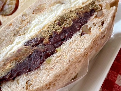 加賀棒茶サンドは好きすぎて、たぶん3回目くらい。栗+くるみ+棒茶+生クリーム+粒あんという要素の多さは、サンドイッチを超えてケーキかパフェかという豪華さ。棒茶の香ばしさがとてもいい。パン生地に練り込まれたくるみが存在感ばっちりの結構な大きさで、食感が非常にいいのも魅力的。たまにこういうものを味わう幸せがあるならば、日常における負の局面もまあなんとか我慢してやるか、と思えるよ。